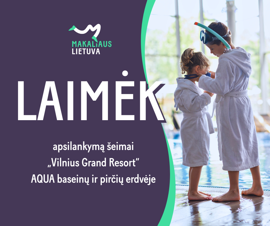 | | | | O kol planuoji poilsį, gal norėtum pamėginti jį ir laimėti? 😏Užsuk į „Makaliaus Lietuvos" Feisbuko paskyrą – ten vyksta konkursas, kuriame gali išbandyti sėkmę ir laimėti apsilankymą šeimai (2+2) „Vilnius Grand Resort" AQUA baseinų ir pirčių erdvėje! 🧜🏻♀️